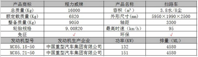 ▲重汽斯太尔道路清扫车主要技术参数图